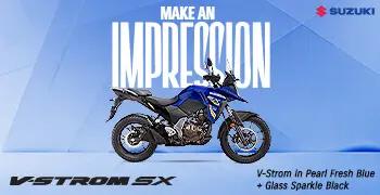 Your search for a Suzuki V-Strom SX showroom has brought you to Tanmay Suzuki, Paras Chowk, Udaipur- Paras Chowk, a one-stop-destination where you can buy your new V-Strom SX in Udaipur- Paras Chowk. At Tanmay Suzuki, you can enquire about the ex-showroom price of the Suzuki V-Strom SX, get a quote for its on-road price, explore the top features and accessories of the Suzuki V-Strom SX, avail insurance and finance for your bike, or inquire for the best available offers & discounts. You can also book a test ride online at Tanmay Suzuki, Paras Chowk, Udaipur- Paras Chowk, to experience what the bike has to offer. Equipped with a 249cm³, 4-stroke, single-cylinder engine, the Suzuki V-Strom SX is a popular sport adventure tourer that offers nimble handling and a lightweight build for manoeuvring through city streets, while its sporty performance ensures thrilling rides across varied terrains.